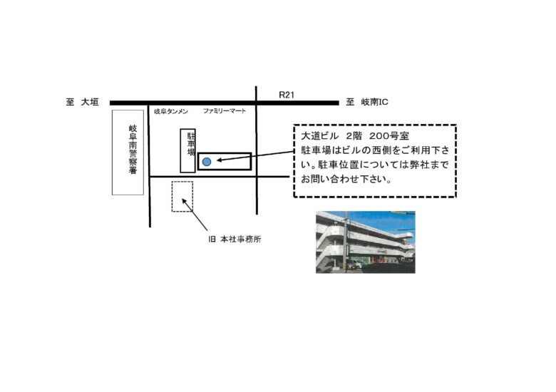 この度、老朽化した本社を改築するため一時的事務所を下記の通り移転します。